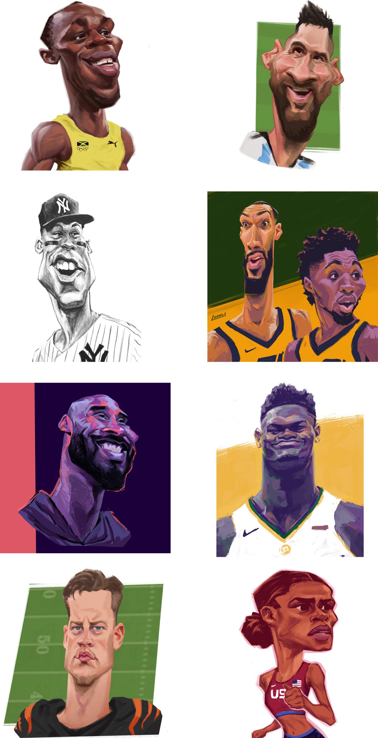 All Illustration Movies & TV Music Politics/History Sports Sports_01 Various Athletes Usain Bolt, Lionel Messi, Aaron Judge, Rudy Gobert & Donovan Mitchell, Kobe Bryant, Zion Williamson,... Jerry Sloan Jerry Sloan The late Utah Jazz coach SF_Baby SF Giants Baby SF Giants championship year baby for ESPN Magazine
